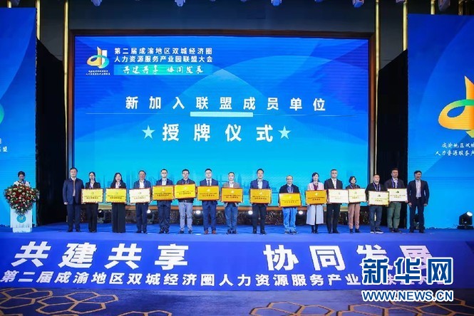 第二屆成渝地區(qū)雙城經濟圈人力資源服務產業(yè)園聯(lián)盟大會授牌儀式。新華網發(fā)(重慶市人力社保局供圖)
