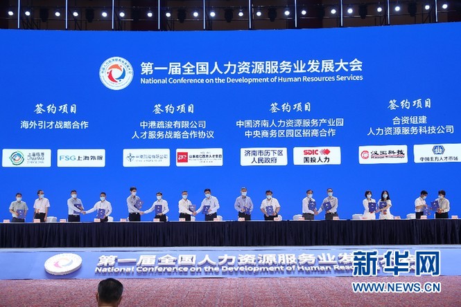 第一屆全國人力資源服務業(yè)發(fā)展大會簽約儀式。新華網發(fā)(重慶市人力社保局供圖)