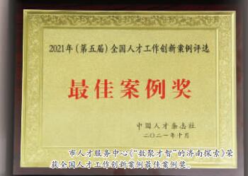 市人才服務(wù)中心《“數(shù)聚才智”的濟南探索》榮獲全國人才工作創(chuàng)新案例最佳案例獎。