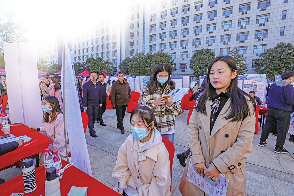 濟南市人社部門組織駐濟用人單位赴高?,F(xiàn)場招攬青年人才。
