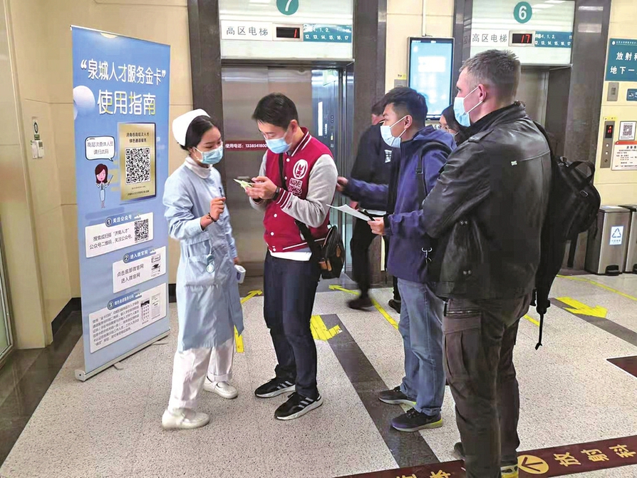 高層次人才通過泉城人才服務(wù)金卡掃碼享受綠色通道服務(wù)。