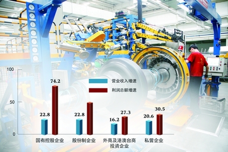 數(shù)據(jù)顯示,10月份私營企業(yè)利潤同比增長28.8%,增速較上月加快21個百分點,連續(xù)兩個月回升。其中,有14個行業(yè)利潤增速在20%以上,呈現(xiàn)良好發(fā)展勢頭。私營企業(yè)對規(guī)模以上工業(yè)企業(yè)利潤增長的貢獻(xiàn)率為42.7%,較上月提高27.6個百分點。